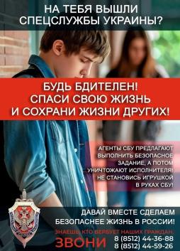 Ваш ребенок может быть завербован. Сообщите в правоохранительные органы по номерам 44-36-88 и 44-59-26, если знаете, что ваших знакомых пытаются завербовать.